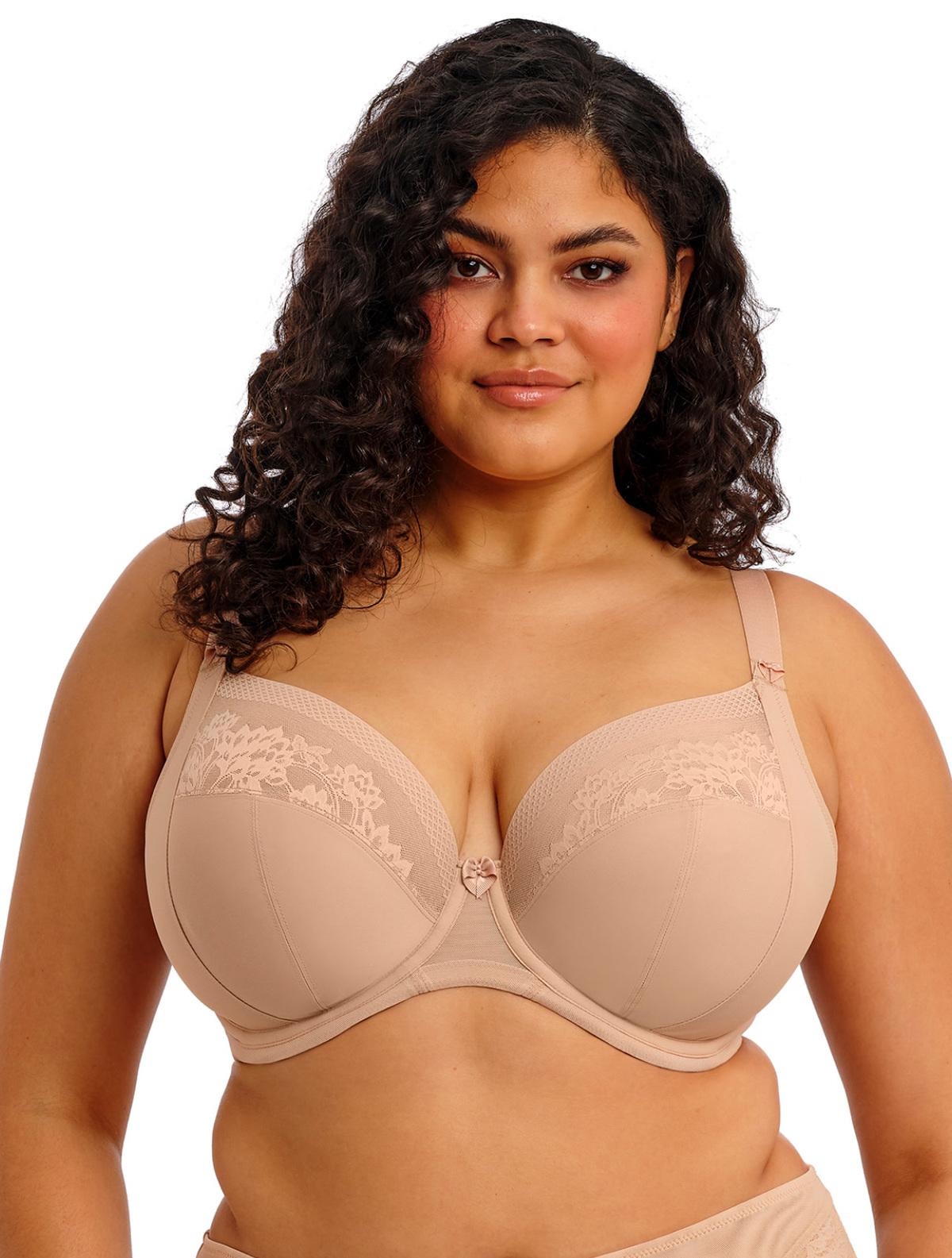 Классический бежевый бюстгальтер, украшенный плоским матовым набивным кружевом. Создан на основе бестселлера Elomi Lucie. Он отлично собирает и поддерживает большую грудь, создавая элегантный образ.
