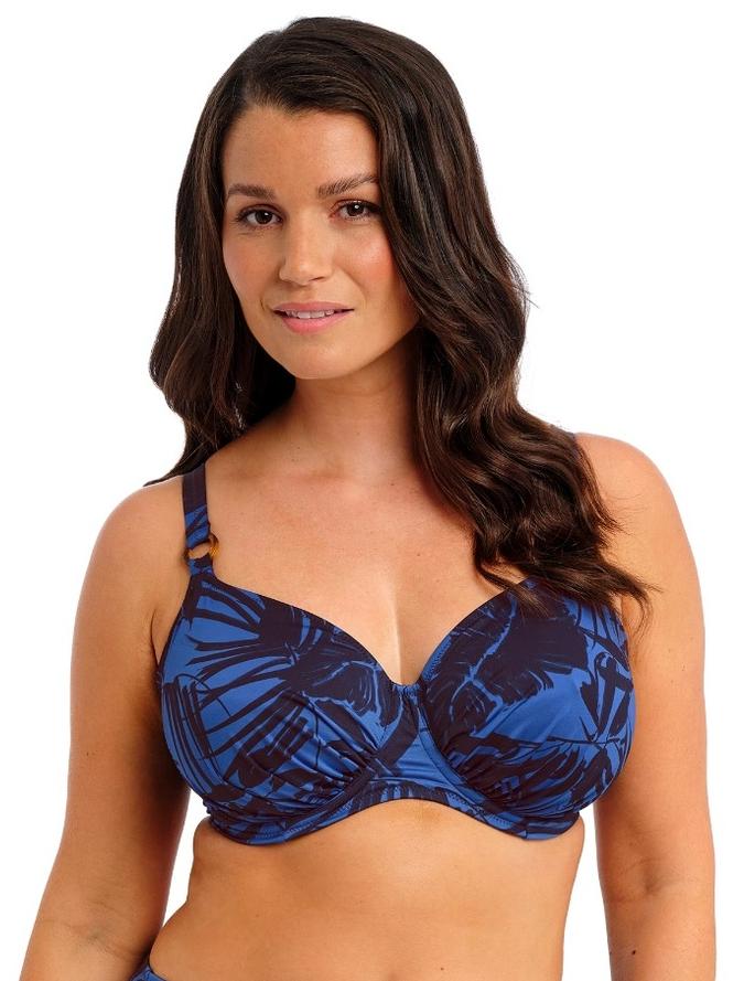 Новый выразительный пляжный образ от Fantasie. Крупный принт с пальмовыми листьями в иссине-черном цвете на насыщенном синем фоне создаёт ощущение курортного настроения. Образ выглядит современно и элегантно, подчёркивая стиль и уверенность своей обладательницы.