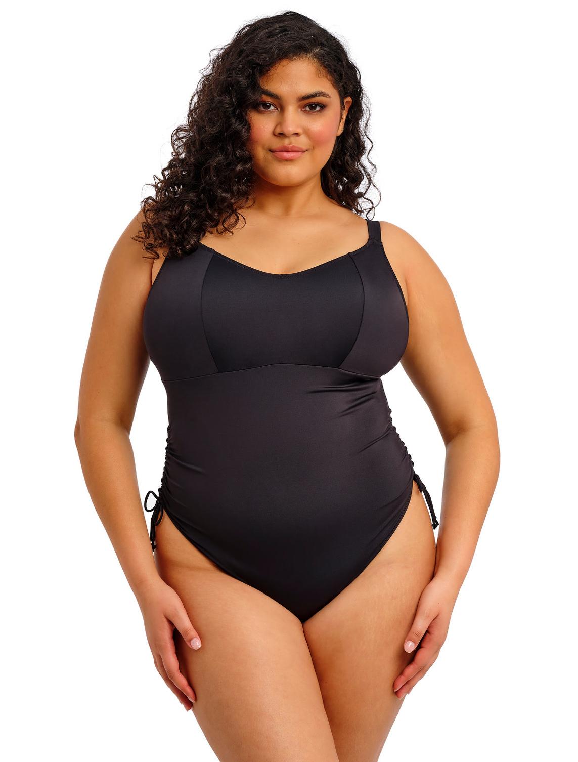 Модель мягко облегает фигуру, подчеркивая естественные формы и создавая гармоничные пропорции без утяжеления образа. Черный - это универсальный цвет, который всегда выглядит актуально: максимально комплиментарен любым пляжным аксессуарам и нейтрален для бассейна.